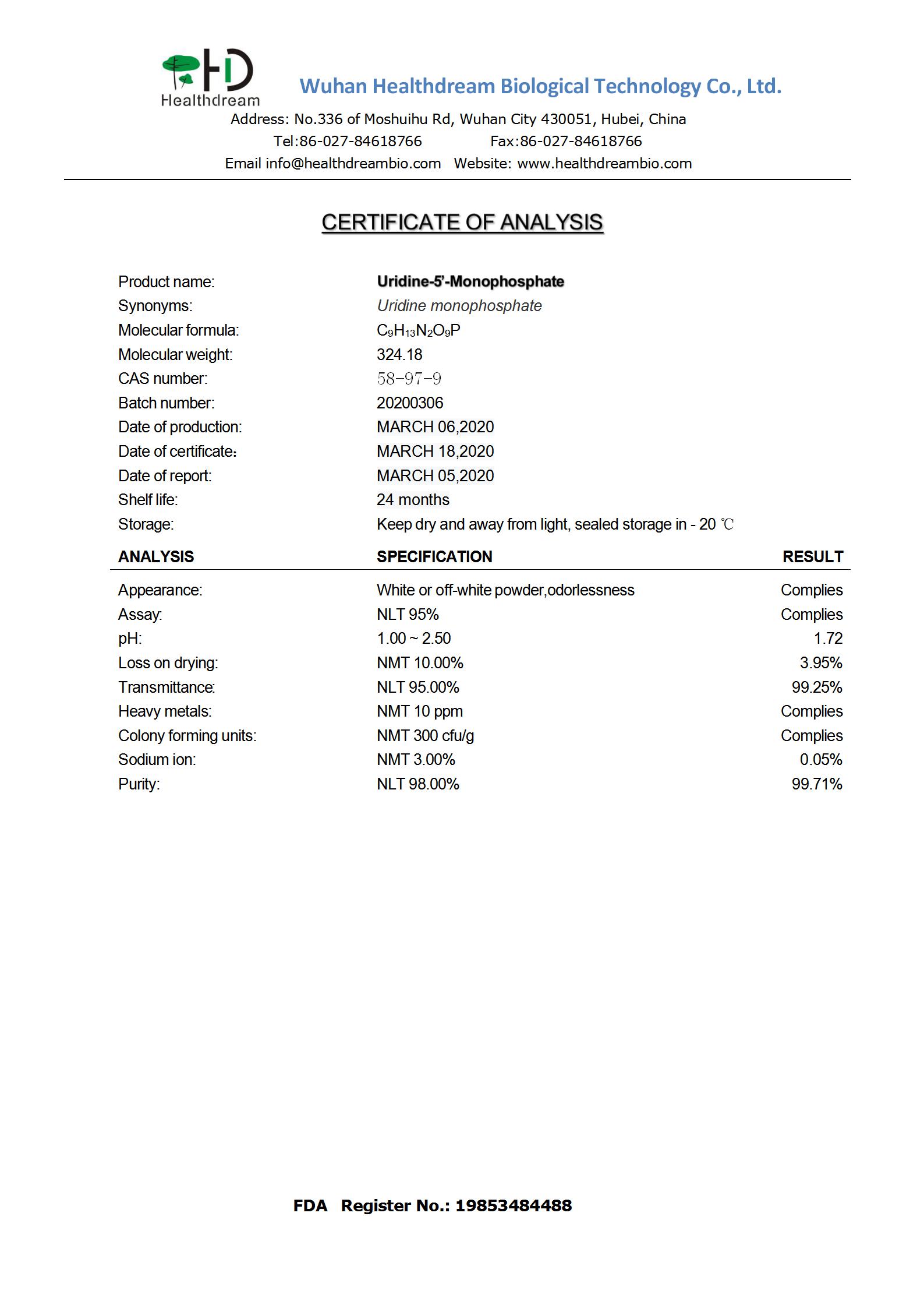 1.Uridine 5-monophosphate is used as an intermediate of nucleic acid drugs, health food and